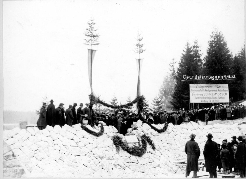 100 Jahre Talsperre Kirnbergsee, nach der Bewertung durch Joachim Schweitzer, der das Stadtarchiv zu diesem Anlass gründlich durchstöberte, das größte und zukunftsweisendste Projekt in der Geschichte der Stadt Bräunlingen, bei lediglich 1.675 Einwohner. Von ursprünglich 6 Mio. Mark sind die Ausgaben inflationsbedingt auf über 3,3 Milliarden Mark gestiegen. Die erstgenannten Kosten von 6 Mio. Mark konnten aus dem laufenden Haushalt ohne Schuldaufnahme finanziert werden. Die Stromerzeugung aus Wasserkraft ist heute wie vor hundert Jahren aktuell. Saubere, regenerative Energie sind heute Schlagworte, welche sich die Stadt Bräunlingen bereits vor 100 Jahren zu eigen machte.